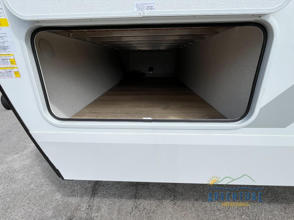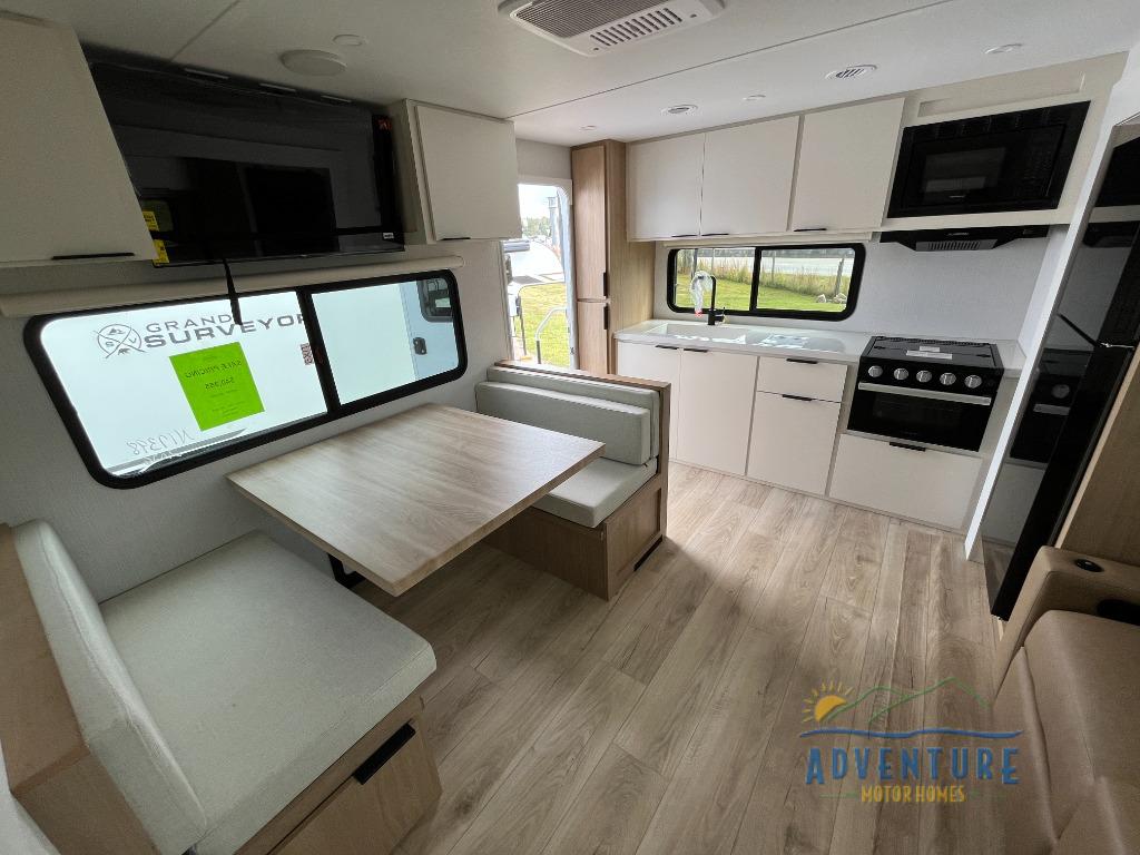 With any Thrive travel trailer by Winnebago, you can camp with functionality, comfort, and convenience! The large front viewing window with strike guard will be the first thing that catches your eye, and the fiberglass sidewalls with Azdel Onboard provide a durable trailer made to last. There is also an exterior ladder, along with front radius profile lights, power stabilizer jacks, and a powered awning with LED lighting to name a few exterior features. You will stay powered up by the 30-amp power cord and 200-watt solar panel, plus there is a tankless water heater for endless hot showers. Inside, you'll love the custom Winnebago furniture, carpetless side outs, molded fiberglass countertops, and residential recessed ceiling lights to keep your space well lit!