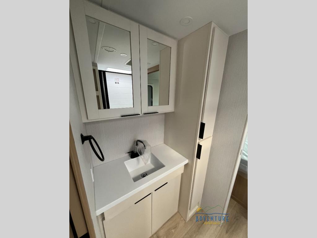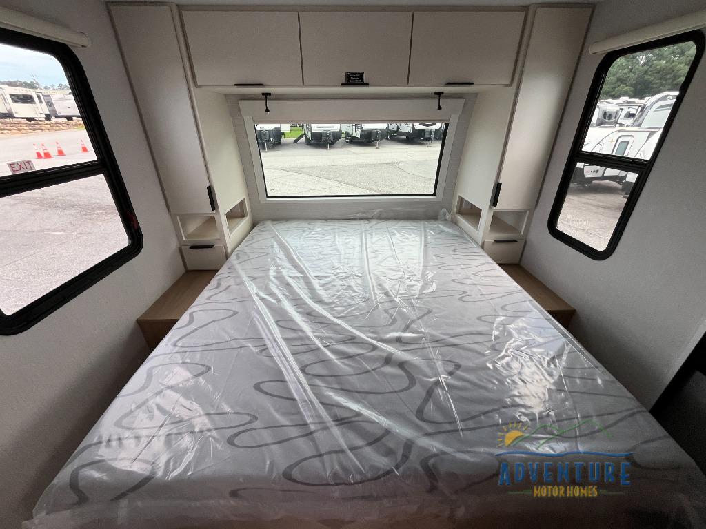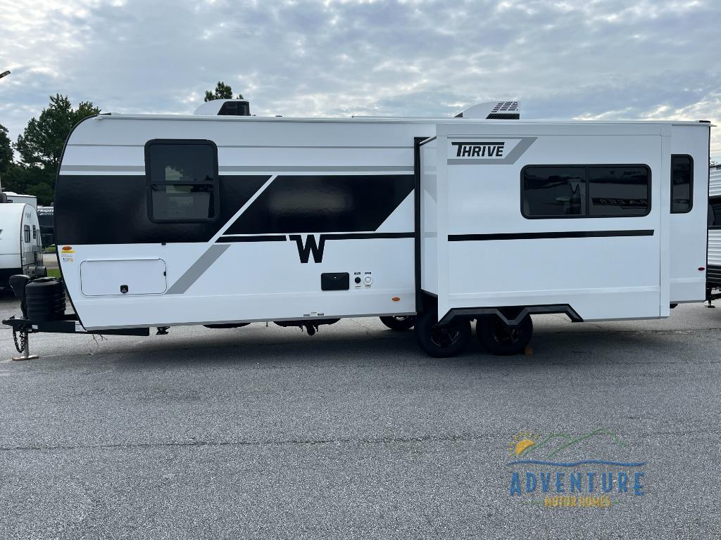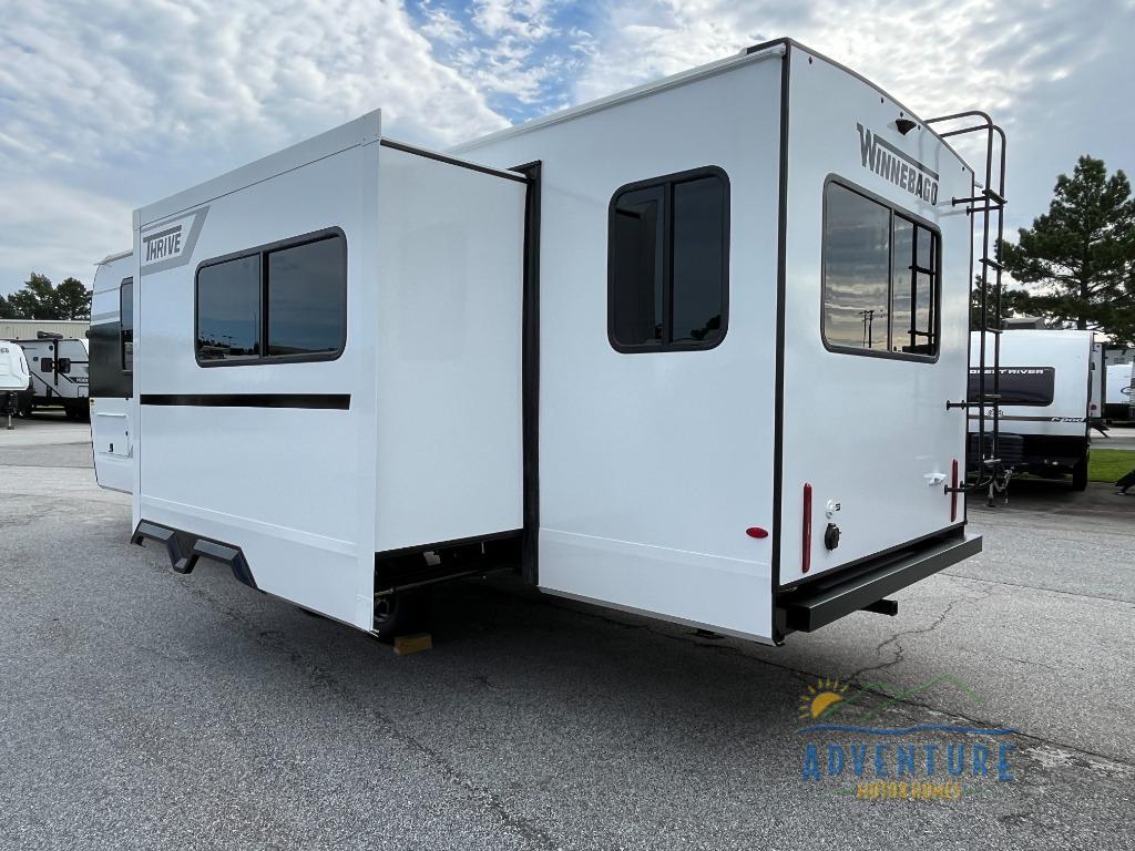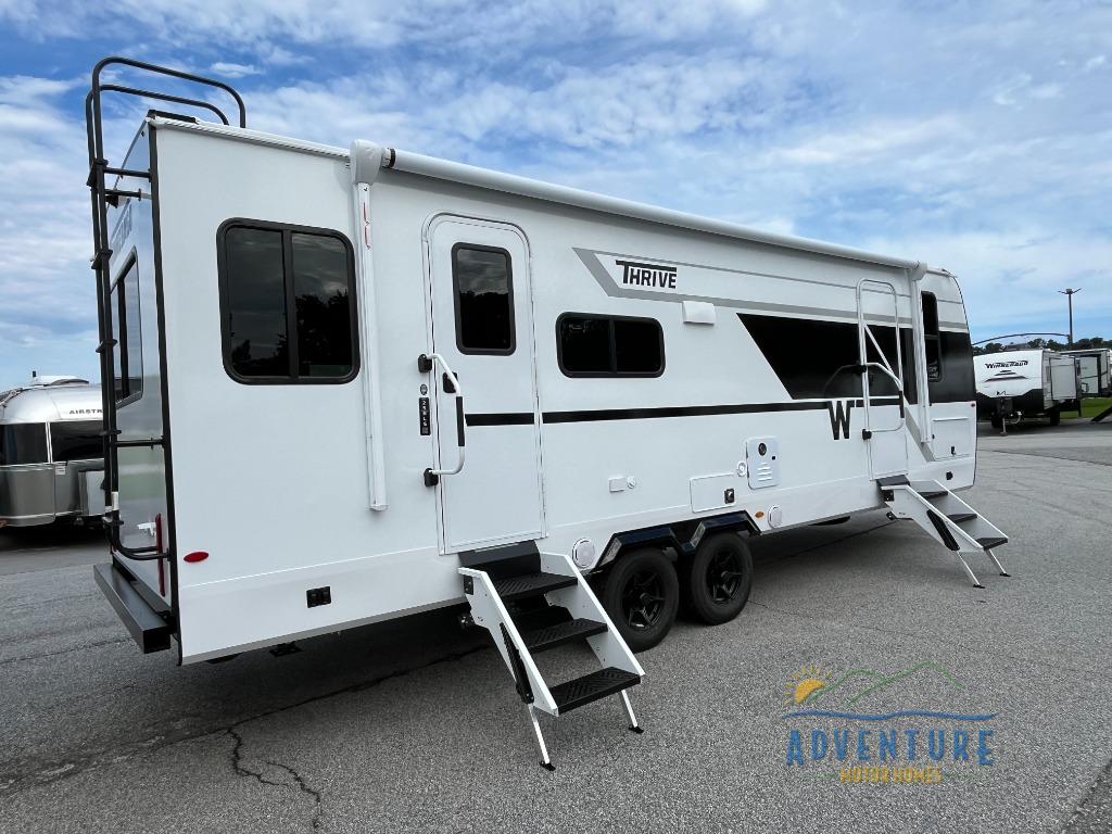 With any Thrive travel trailer by Winnebago, you can camp with functionality, comfort, and convenience! The large front viewing window with strike guard will be the first thing that catches your eye, and the fiberglass sidewalls with Azdel Onboard provide a durable trailer made to last. There is also an exterior ladder, along with front radius profile lights, power stabilizer jacks, and a powered awning with LED lighting to name a few exterior features. You will stay powered up by the 30-amp power cord and 200-watt solar panel, plus there is a tankless water heater for endless hot showers. Inside, you'll love the custom Winnebago furniture, carpetless side outs, molded fiberglass countertops, and residential recessed ceiling lights to keep your space well lit!