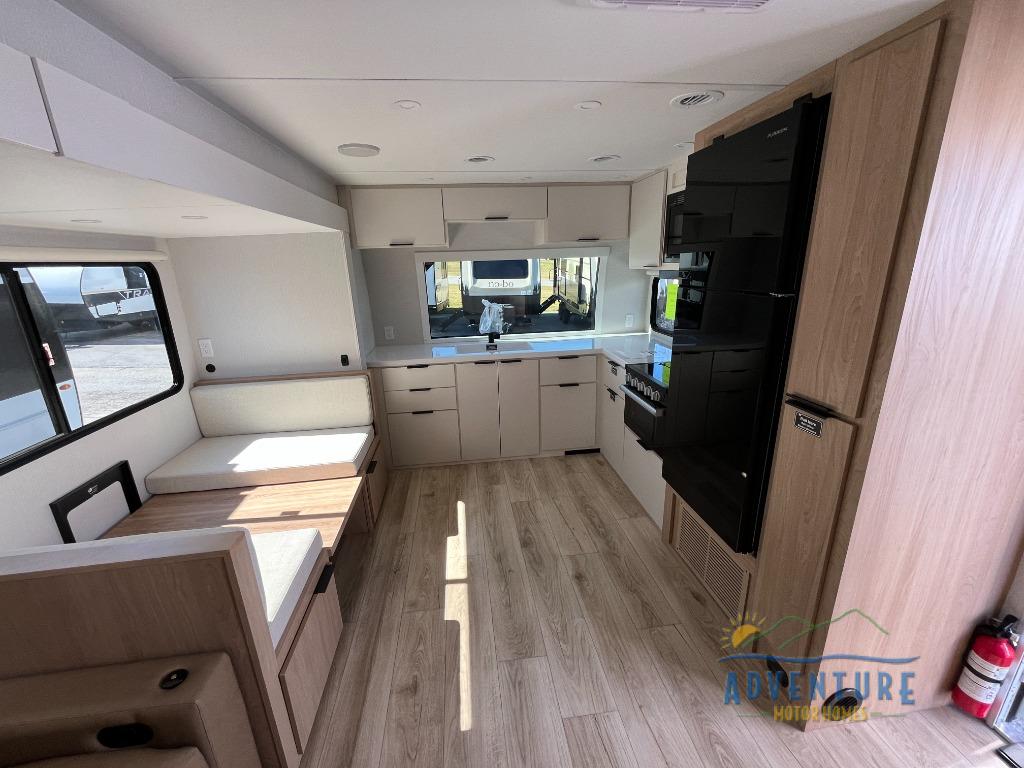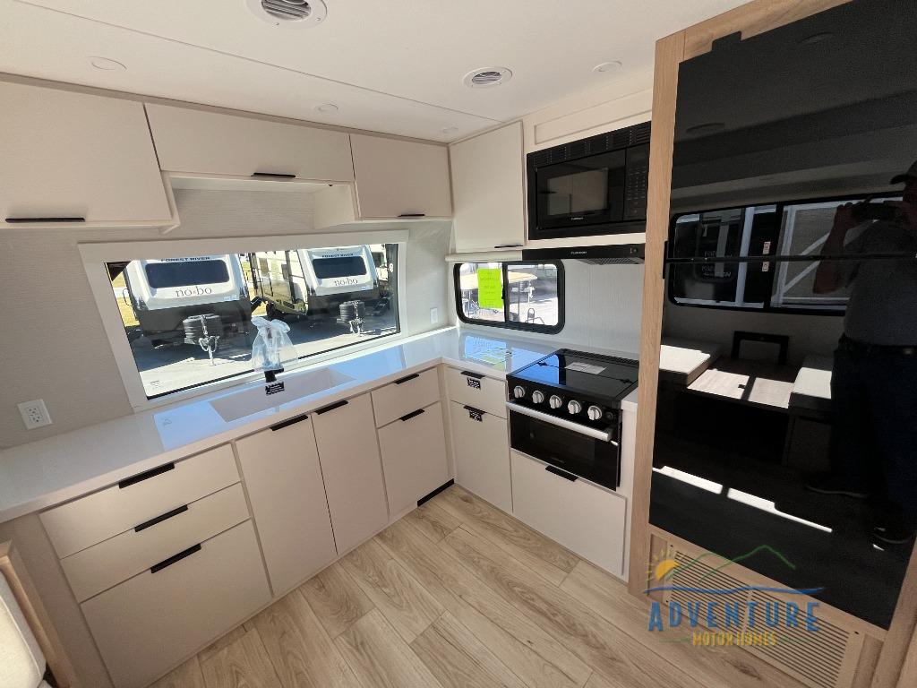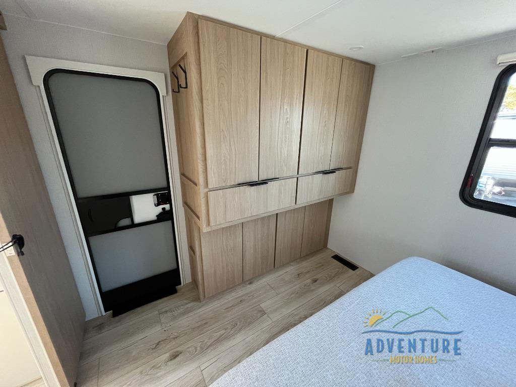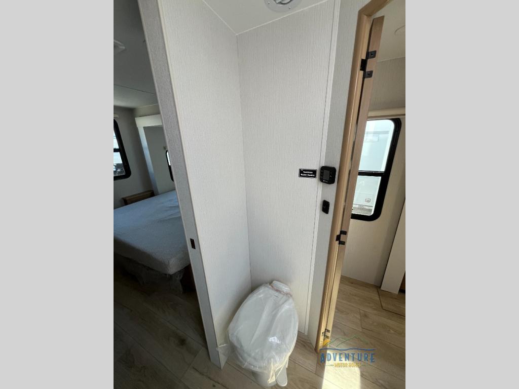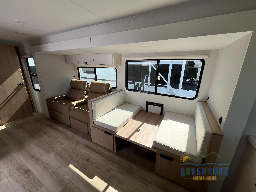 Have everything you need in a compact and well equipped travel trailer. After entering the travel trailer you will find neat places and storage to have everything in place. There is a galley kitchen with molded fiberglass countertops providing unmatched durability. When wanting a perfect place to relax you can enjoy watching TV in the booth dinette or enjoy movies just like at the theaters in the theater seating. If you want to have your own private space you will love the bedroom that has access to a conveniently placed bathroom with a modern radius shower. The bedroom also has a closet to store all your clothes and keep them wrinkle-free!