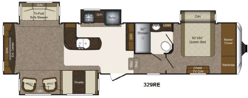 Enjoy every camping trip in this Laredo 329RE fifth wheel featuring a rear entertainment center, quad slides for added interior space, and more!