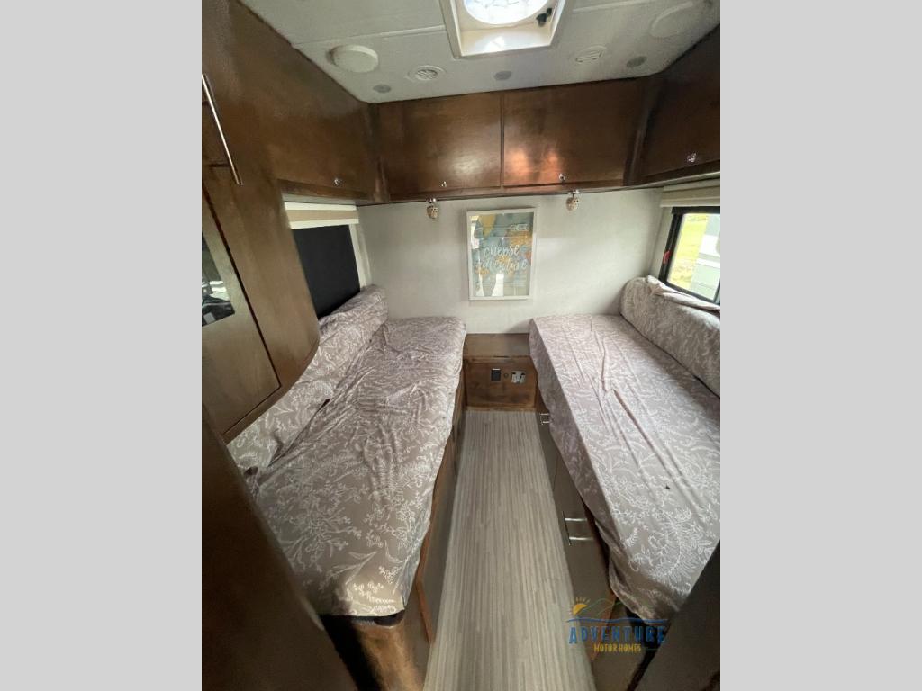 This Wayfarer 24 TW class C diesel motorhome provides access to the shower separately from the private toilet and vanity with sink which is quiet convenient when you are in a hurry to head into town. And if you prefer your own wardrobe, this unit allows for his and hers clothing along separate sides of the coach, one for each twin bed. The dual opposing twin beds convert to a king size bed if you need more sleeping space on any given night. And the loft bed over the cab provides additional sleeping space for your kids or overnight guests. You will find four seatbelts, kitchen amenities, plus more. Stop looking around for the perfect motorhome, you have found it!