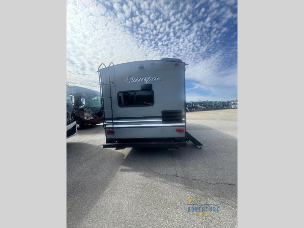 For any camping trip you will want a Forest River Surveyor travel trailer. These models are lightweight and easy to tow, plus you will find that inside there is superior craftsmanship throughout. Along the interior there is a barreled ceiling which adds more headroom in each model and stainless steel appliances for an added at home feature. The designer Carefree flooring is stylish and easy to clean, plus there is a Furrion Bluetooth stereo for you to crank up the tunes. Along the exterior you will enjoy convenient features like the outside shower, the electric awning with LED lights, and the pet friendly utility hook with food bowls too. It is now easier than ever to choose a travel trailer that is ideal for you! What are you waiting for? Come select your Surveyor travel trailer today!