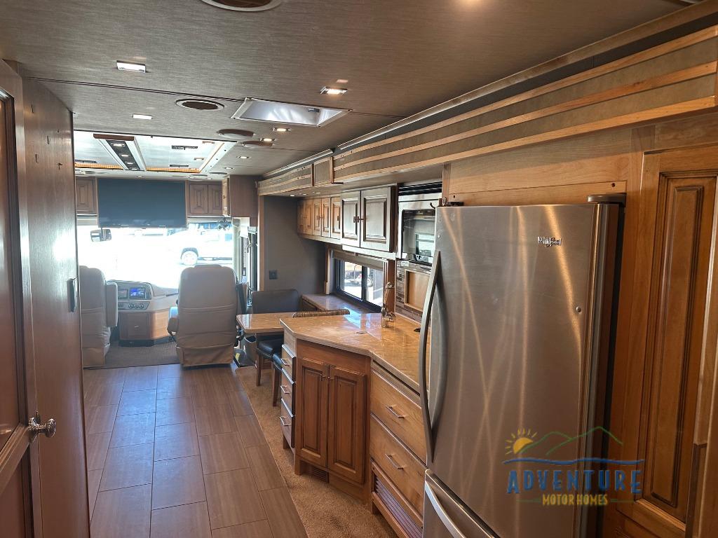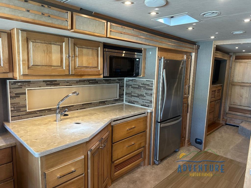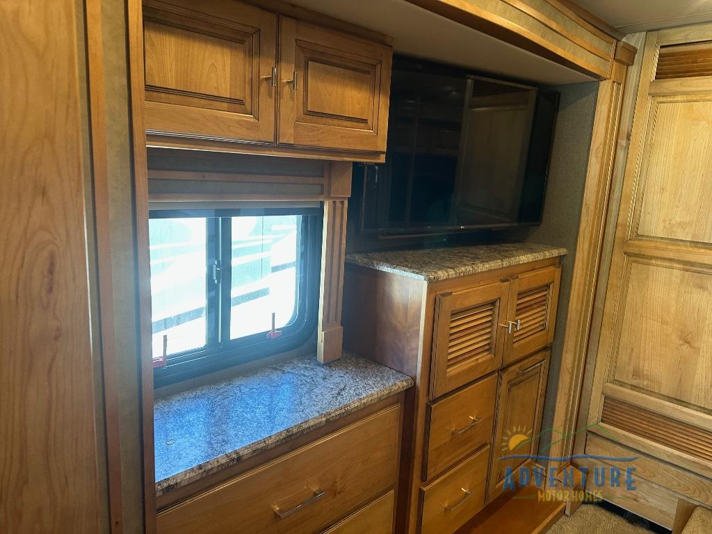 Have you been searching for the perfect RV to take you to far away places in comfort even while moving down the highway? This Allegro RED Class A diesel motorhome offers a comfortable cab area with 12V and USB dash receptacles allowing the electronics to stay charged to take pictures or download your favorite apps. If you arrived at your RV spot at night, you can retire to the queen bed slide out in the private bedroom which also includes nightstands and overhead cabinets. You can even add an optional washer and dryer if you like. You will have full bathroom and kitchen amenities to stay clean and fed the whole time, so start exploring today!