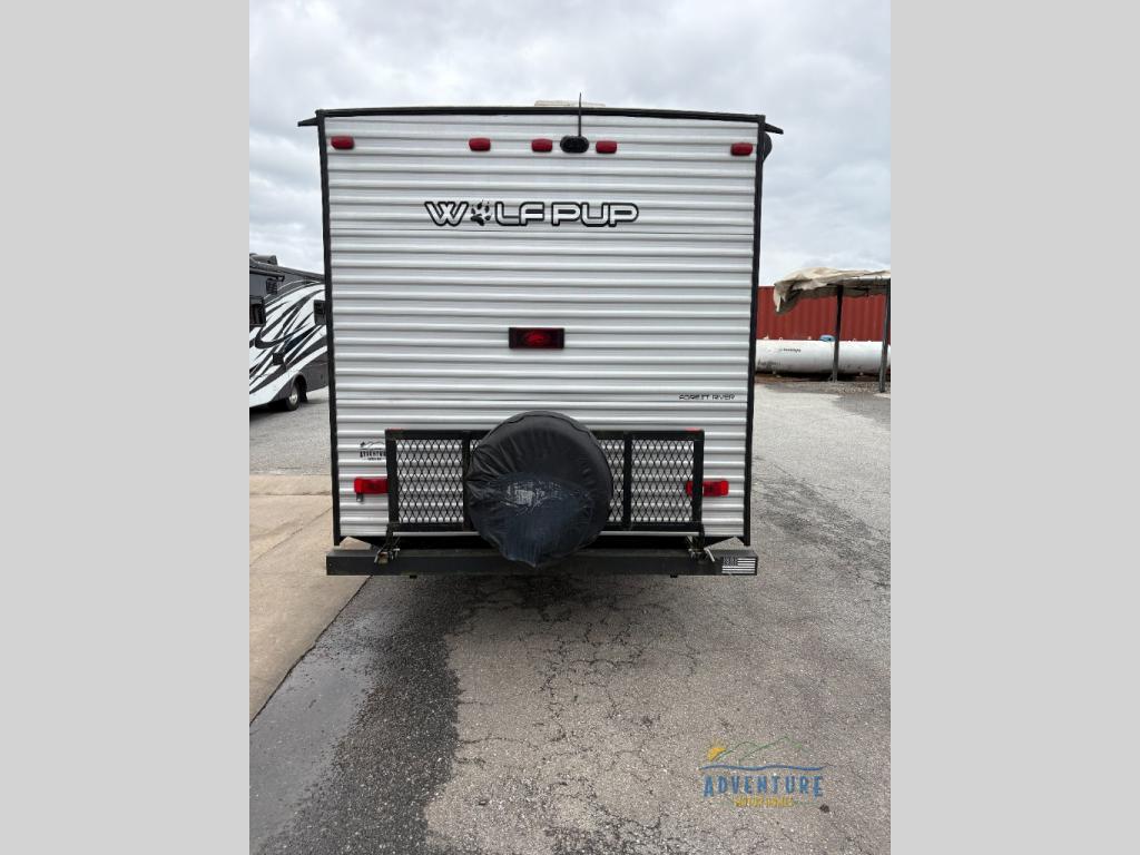 You are going to love the journeys you'll take and memories you'll make with the Forest River Cherokee Wolf Pup toy hauler and travel trailer! The back-up camera system is going to make it very easy to maneuver into the campsite, and the outside shower with hot/cold water will help you clean up while you are outside playing. The stereo has interior/exterior speakers so that you can listen to your music from just about anywhere, and you even get a Cherokee Total Control app and remote control system so that you can be in charge of your trailer's functions without much effort. The Cherokee Wolf Pup has a seamless roofing membrane with heat reflectivity, and the outside storage door is going to allow you to bring a little extra gear.