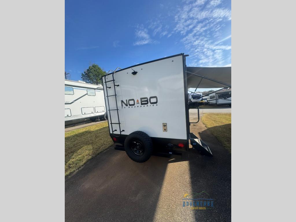 The No Boundaries travel trailers and toy haulers by Forest River are easy to tow by a four or six-cylinder vehicle because they range in weights from under 2,000 pounds up to 5,000 pounds. Depending on the model you choose, you will find independent torsion suspension with industry-leading cargo capacity, six-lug satin black aluminum wheels and All-Terrain tires, frame-mounted walkable steel fenders, a laminated Azdel exterior, a Cold Weather package, and a fully walkable 500-LB roof with PVC roofing membrane. The interior offers an exclusive central vacuum system plus much more! You will find a NOBO in a 10 Series, 16 Series or a 19 Series to fit your extreme lifestyle, so make your selection today!