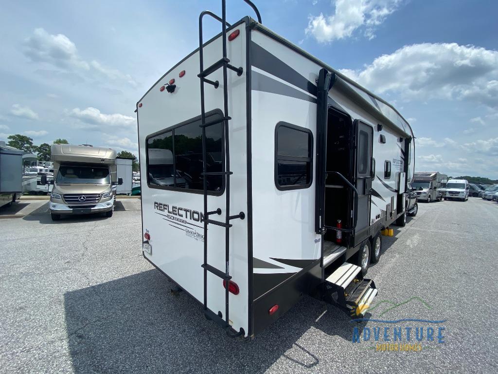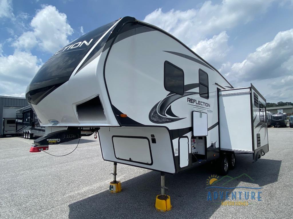 Each Reflection 150 Series fifth wheel by Grand Design allows you to use your half-ton and short-bed truck to tow thanks to the 90-degree turn radius pin box. The Universal All-In-One docking station, the LP Quick Connect, and the "One-Touch" automatic leveling system will make setting up and packing up easy for those weekenders or full-timers that like to move around to see the countryside. Inside, you will love the Gunstock fixtures and hardware, the louvered tread steps to the bedroom, the large panoramic windows, plus the many features in the mandatory packages. It's time to reflect on your wise choice, so choose a Reflection 150 Series today!