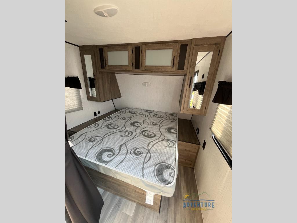 If you want to escape the hustle and bustle of everyday life and wake up with a view then you need this travel trailer! The front queen bed offers a comfortable place to lay your head at night, and you can freshen up each morning in the full bathroom. Now that you're ready for the day, head to the 8 cu. ft. refrigerator, grab some eggs and bacon, and fry them up on the three burner cooktop. You can enjoy your meals at the booth dinette, take an afternoon nap on the sofa, and relax outside underneath the 14' awning while you read a book!
