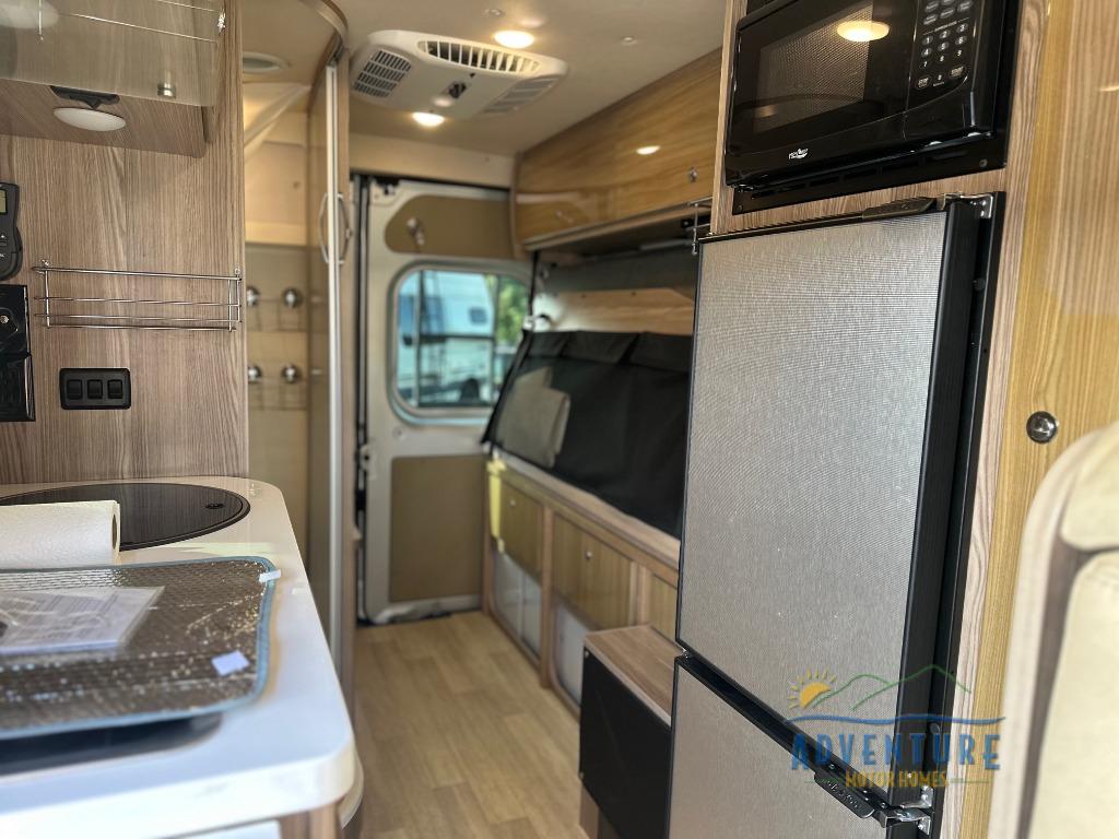 Efficiency meets comfort in the Travato Class B gas motorhome by Winnebago. The 215-watt solar panels and the energy management system allow you to go off-grid when the adventure calls for it, and the Coleman Mach 10 NDQ A/C will keep you comfortable during the hot summer months. If the weather is nice out, set up the power awning with LED lights or stay inside with the side and rear screen doors closed to keep the bugs out. Each model includes plenty of storage space, including RAM Tough-Track Mounts throughout, Anything Keepers, plus below floor storage for your outside gear. The Travato also includes a Corian countertop and a spice rack in the galley, a convenient medicine cabinet and mirror in the bath, plus LED ceiling lights throughout to keep everything bright and open!