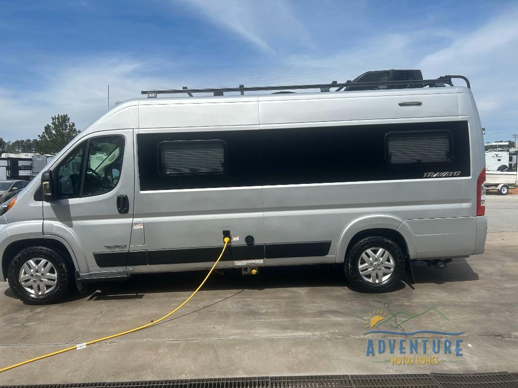 Efficiency meets comfort in the Travato Class B gas motorhome by Winnebago. The 215-watt solar panels and the energy management system allow you to go off-grid when the adventure calls for it, and the Coleman Mach 10 NDQ A/C will keep you comfortable during the hot summer months. If the weather is nice out, set up the power awning with LED lights or stay inside with the side and rear screen doors closed to keep the bugs out. Each model includes plenty of storage space, including RAM Tough-Track Mounts throughout, Anything Keepers, plus below floor storage for your outside gear. The Travato also includes a Corian countertop and a spice rack in the galley, a convenient medicine cabinet and mirror in the bath, plus LED ceiling lights throughout to keep everything bright and open!
