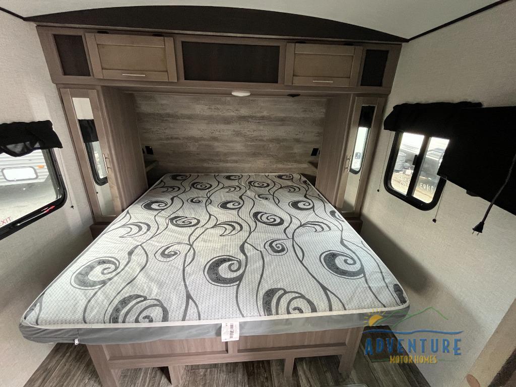 With any Sunset Trail travel trailer by CrossRoads RV, the interior offers a stainless steel farmhouse single bowl sink with a cover, solid surface countertops in the kitchen, a 12 volt refrigerator, USB ports in the bedroom and main area, and a Connexx entertainment TV with soundbar for inside enjoyment. Also included is the Extreme Weather package with maximum insulation with reflective foil, a 30,000 BTU furnace, and a 2" heat duct in the enclosed underbelly for four seasons of traveling. And the Blade Air system offers 20% more airflow and re-engineered components on the A/C. The HyperDeck flooring is water resistant, fiberglass reinforced and has polypropylene layers. Make your lightweight and comfortable RV decision today!