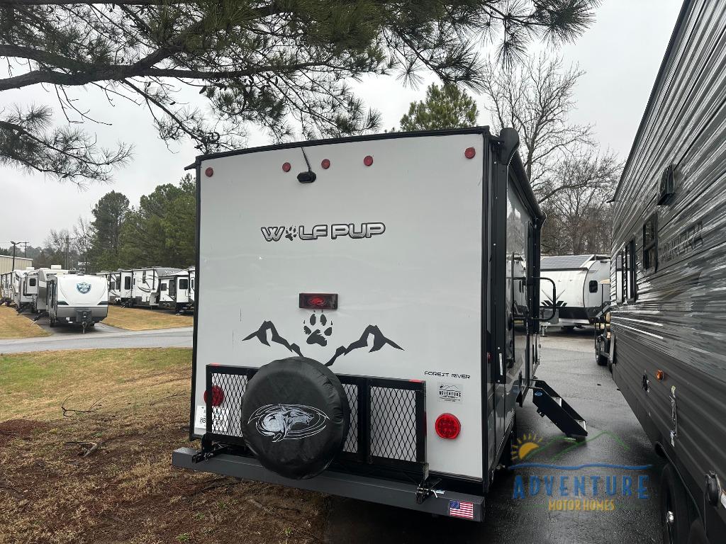 Come see how easy these Forest River Cherokee Wolf Pup Black Label travel trailers and toy hauler are to haul! They are fully self contained with ample tank capacities, an abundance of storage space, and filled with at home amenities. The aerodynamic smooth radius front profile, the Power Gear frame technology, and the space saver rail design make them easier to maneuver. You will also appreciate the seamless roofing membrane with heat reflectivity to keep the sun from making your unit a hot box. In addition to all of the standard features included, they each come with Black Label features including thermo-foil arctic insulation, a gel coated fiberglass exterior, a power tongue jack, and much more. Choose the best model for you today!