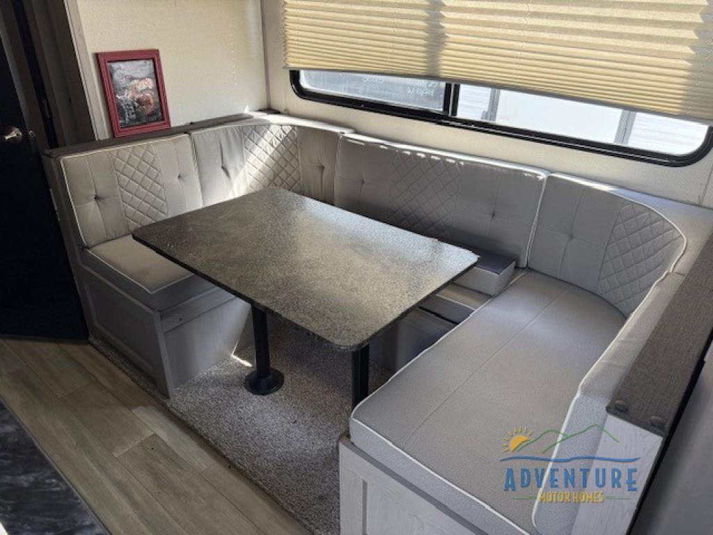 Looking to travel to see new campgrounds and enjoy the outdoors? This trailer offers you that choice then you can return to inside comforts from a queen bed with dual wardrobes to a U-shaped dinette slide out that allows you to provide overnight guests sleeping arrangements once you have finished your dinner. The galley kitchen offers a 2 in 1 gas oven and range, plus a large two-door refrigerator and microwave. The rear full bathroom might just be the reason you wanted this RV thanks to the privacy, the linen storage and all the amenities to allow you to skip the public facilities.