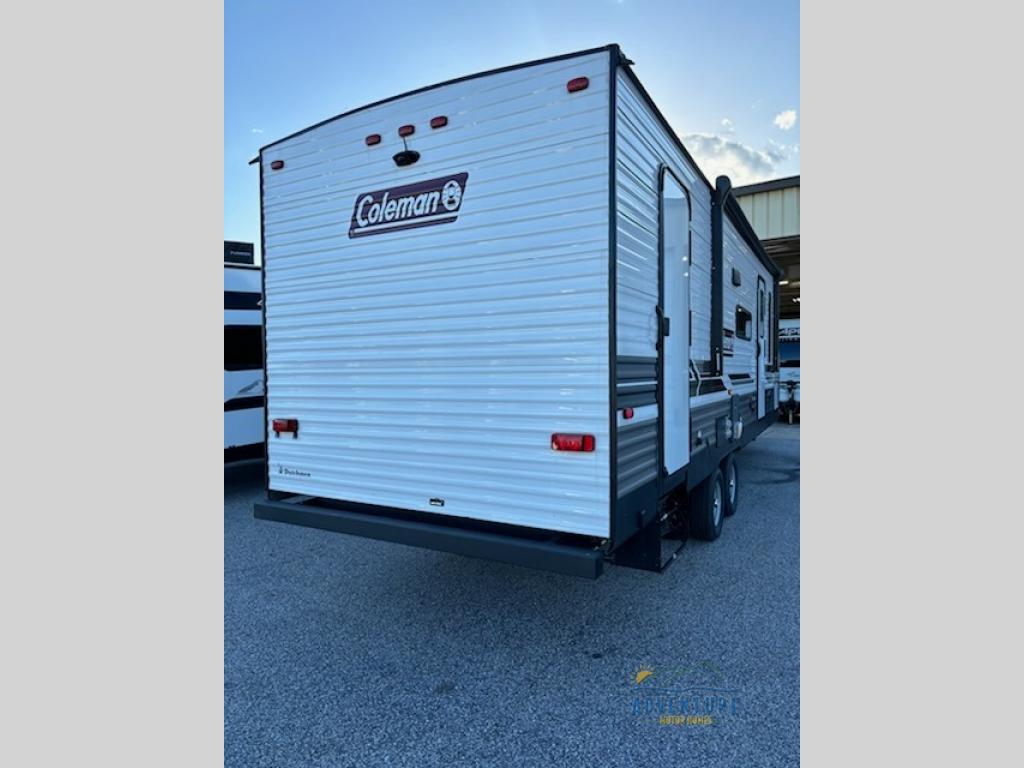 With any Coleman Lantern Series travel trailer and toy hauler travel trailer, the interior will impress with upgraded residential grade linoleum and Eyewear luxury furniture for style and durability, the undermounted large kitchen sink with stainless steel high-rise kitchen faucet, and seamless countertops, plus the hard valances in the living room and master bedroom and the AM/FM/CD/AUX/Bluetooth stereo. The Dutchmen construction advantage is included and provides a durable roof structure with a TPO roof, 3/8" decking, fiberglass insulation, and a lauan interior panel, plus an insulated structure with a metal exterior panel, a wood frame with R7 thermal insulation and an lauan interior panel. Also included is the Blade air flow system which helps reduce air turbulence and noise with duct elbows and wyes that feature enlarged inlets. Choose a Coleman Lantern Series because you appreciate quality, value and design when you camp!