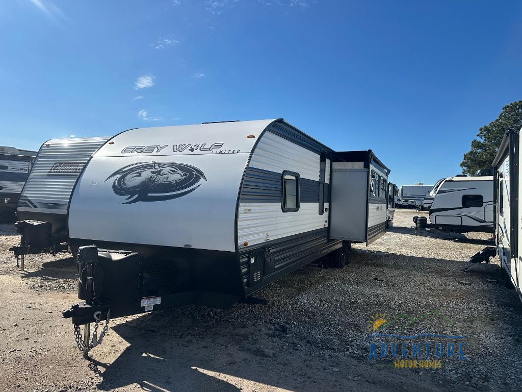 Whether it's a journey that will take you to new locations or a tried-and-true getaway to that favorite and memorable destination, the Forest River Cherokee Grey Wolf travel trailers and toy haulers are going to make the trip worth it every single time! You can travel in confidence with the premium wheel package, seamless roofing membrane with heat reflectivity, Power Gear frame technology with space-saver rail design, and Cherokee back-up camera system. The Cherokee Grey Wolf's interior is highly attractive with its stainless steel kitchen suite package, premium bedding ensemble and comforter, and 8" ceiling-mounted subwoofer with accent lighting. You will also find a black waste tank flush-out kit, an outside shower with hot and cold water, an armored underbelly tank enclosure, a power tongue jack, and an RV grill quick connect.