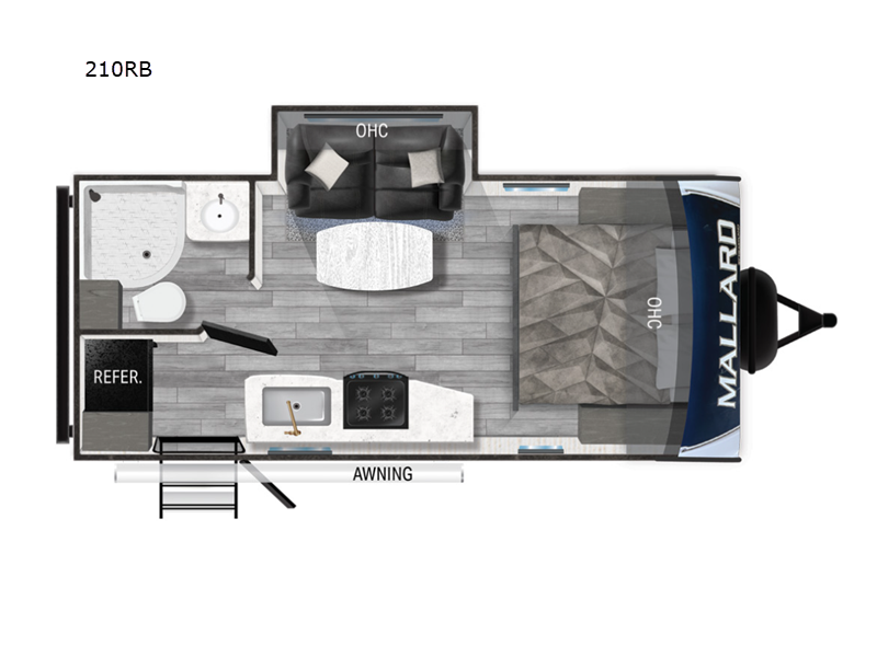 Grab a drink from the 8-cu. ft. refrigerator on your way out of this Mallard travel trailer to relax under the 12' power awning with LED lighting or take a walk around the campgrounds. You can easily grab your camp chairs from the Super King Kong-sized pass-through storage if you hadn't already brought them out, and when you get back, be sure to stop at the full bathroom to get cleaned up before making lunch. You can then dine at the sofa slide with a table, take a nap on the king bed, and do whatever is next on your camping list.